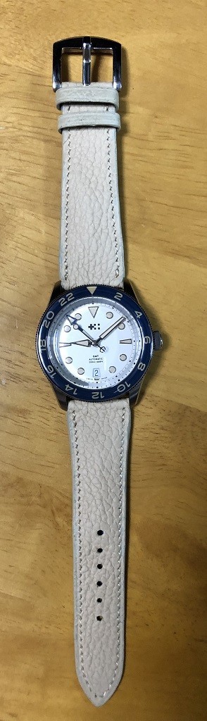 ル・ボナーさん曰く、エッグシェルは製作が大変だったとのことです。妙な色を指定してごめんなさい。エッグシェルで時計ベルトをオーダーする人はいないですよね。でも、折角のオーダーなので、ありきたりな色じゃ勿体ないと思ってしまうんですよね…